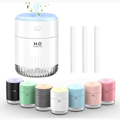 SZO Portable Mini Humidifier, 500ML USB Personal Cool Mist Humidifiers for Bedroom Office Travel Desk, Whisper Quiet 20dB with 2 Mist Modes & Auto Shut-Off, Small Desktop Humidifier