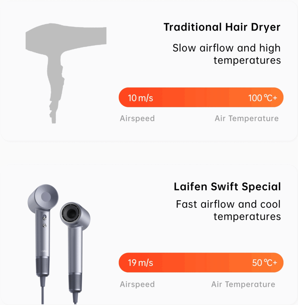 Dry your hair in just 90 seconds with a 110,000 RPM motor.