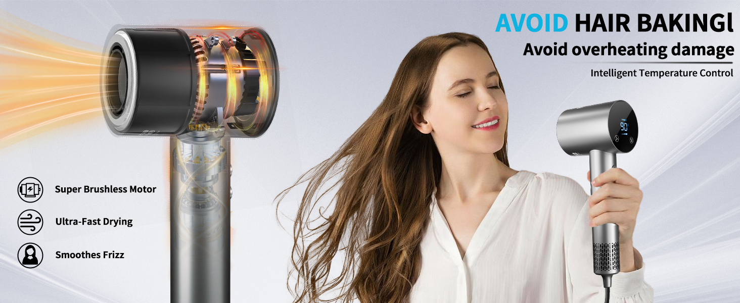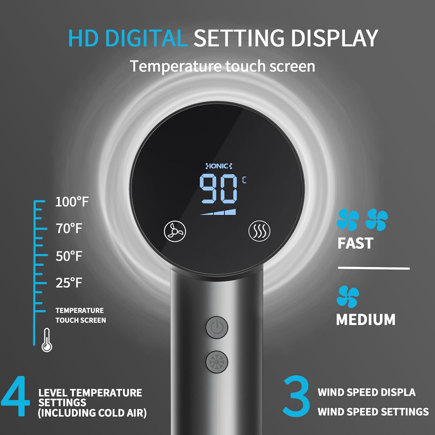 Hair Dryer with Diffuser Ion Hair Dryer 1500W HD Display Temperature Touchscreen Hair Dryer Ion Hair Dryer 4 Temperature Levels and 3 Speed Levels
