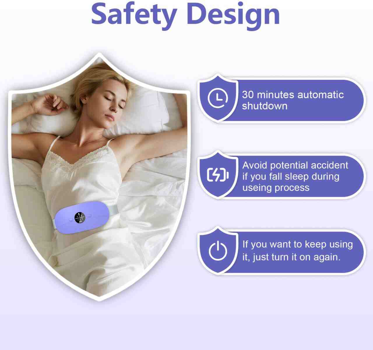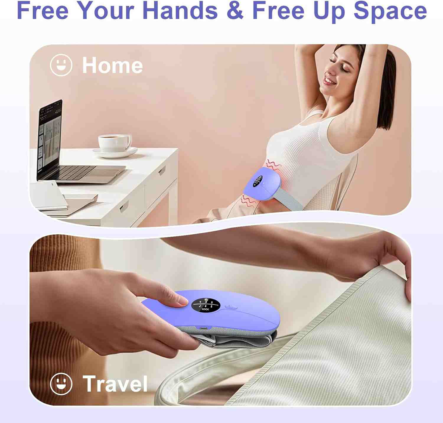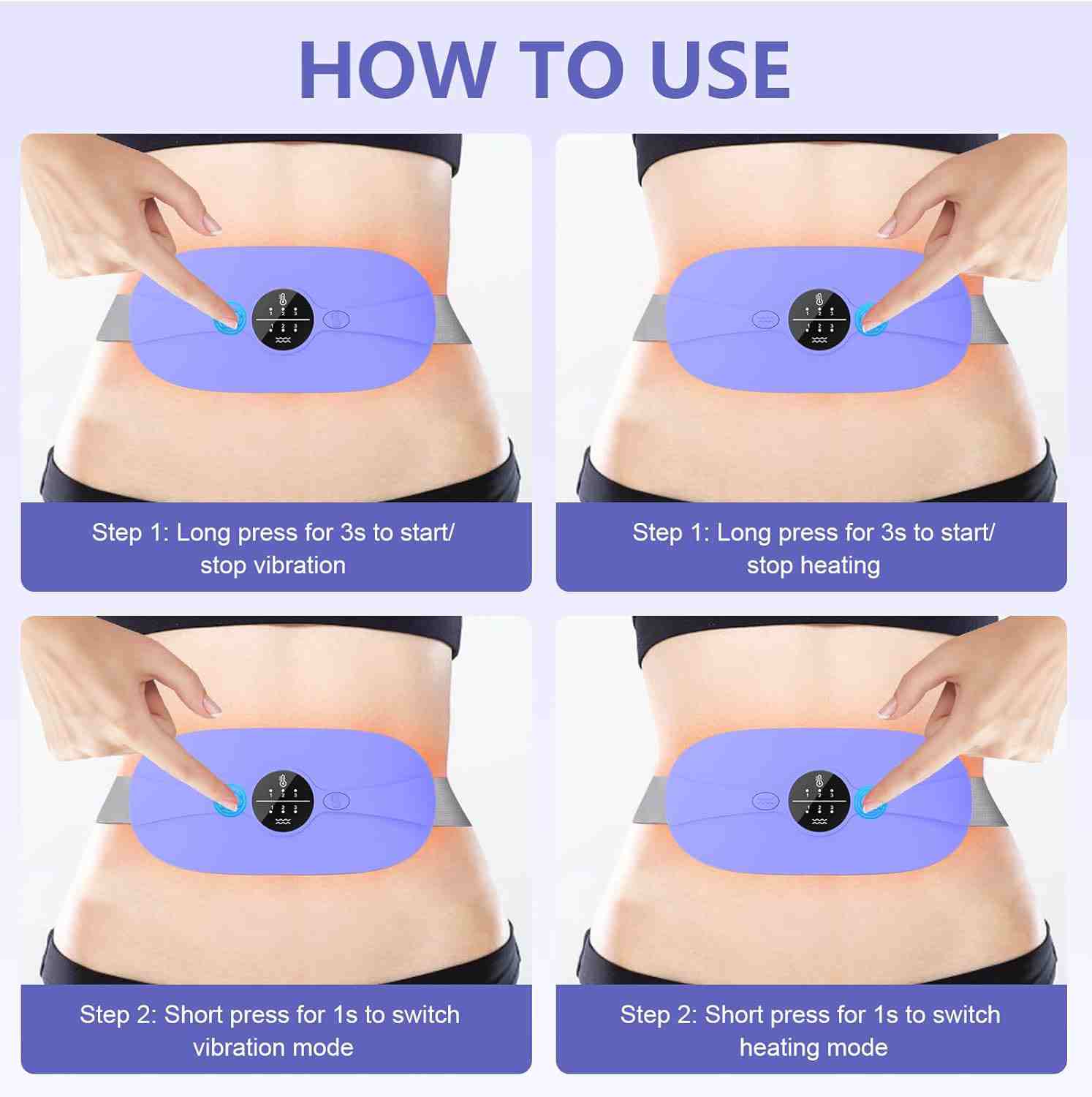 Heat therapy + vibration massage helps relieve menstrual cramps, abdominal, and back pain.