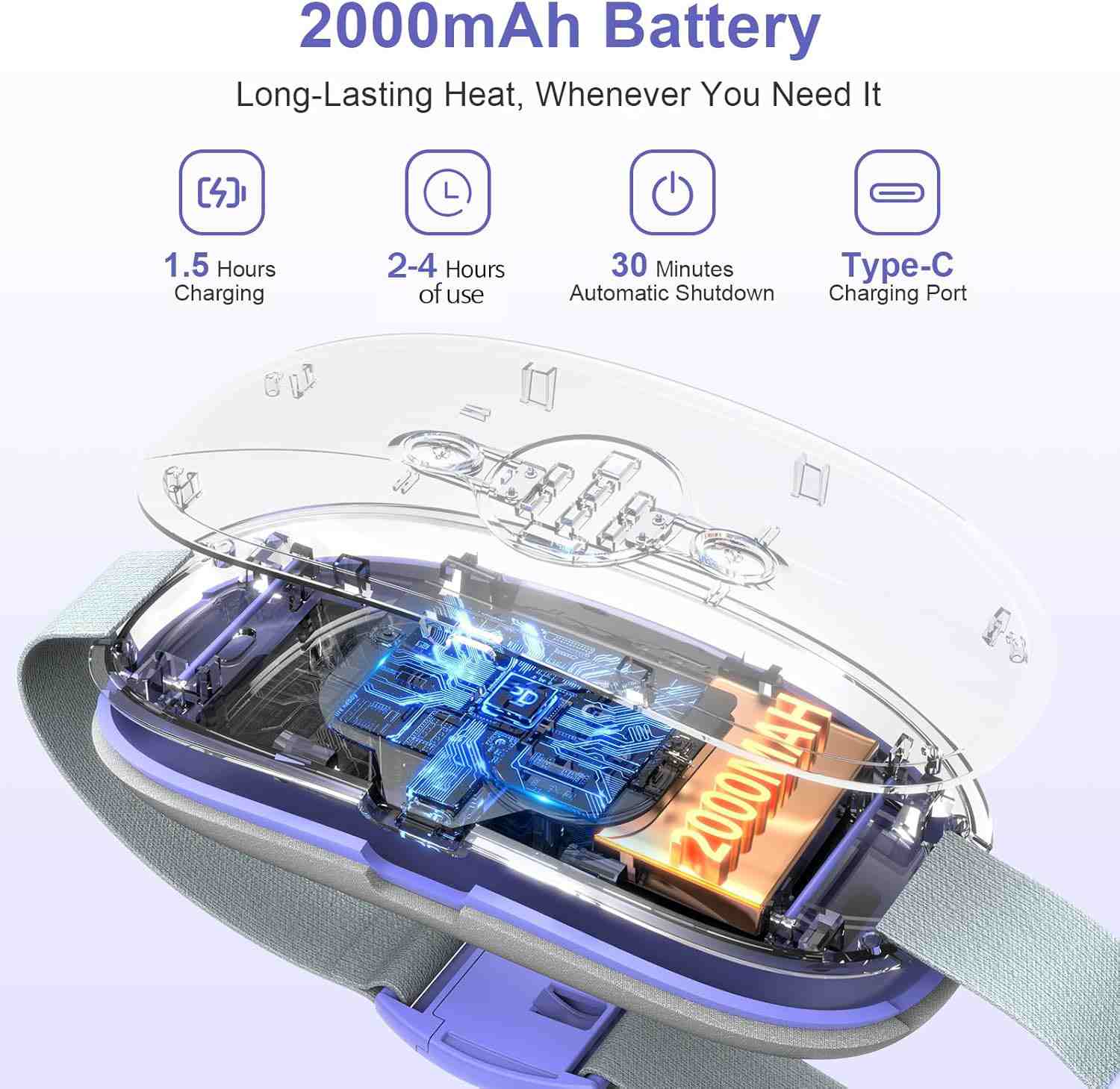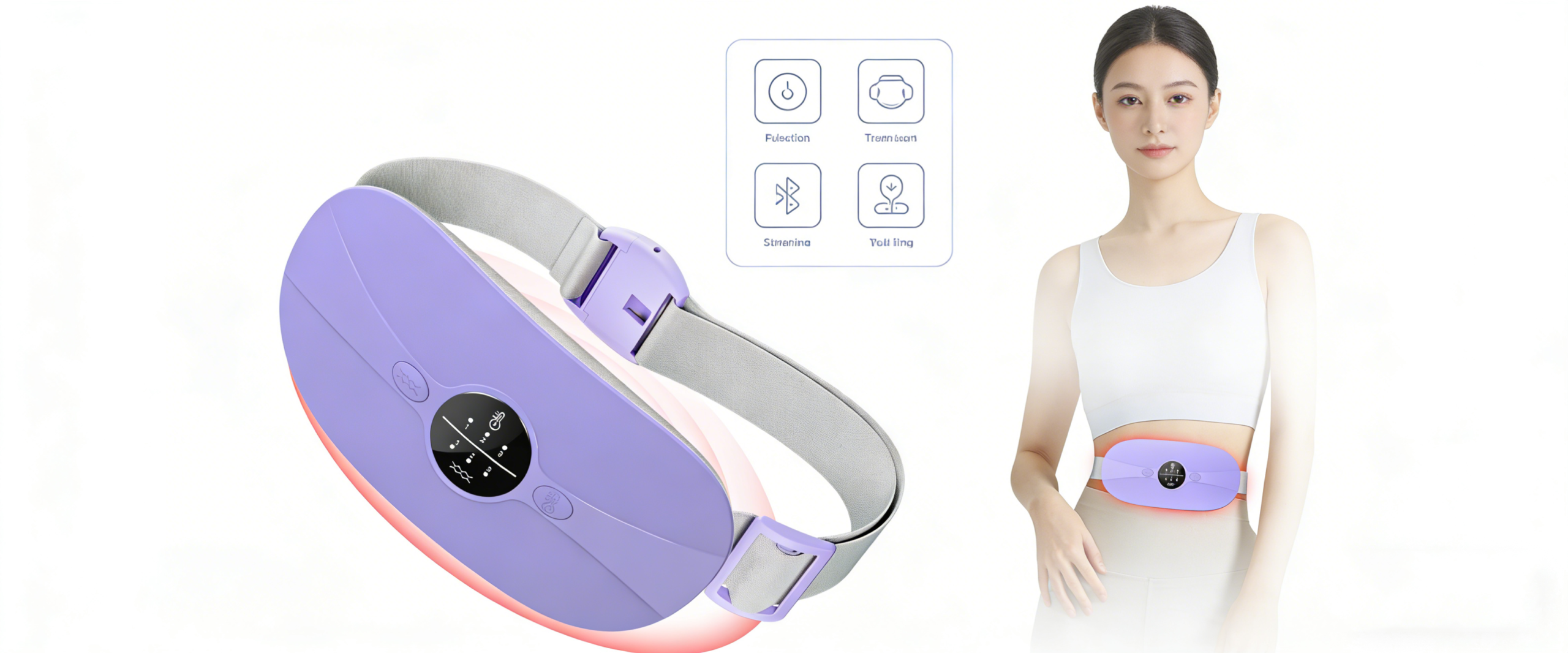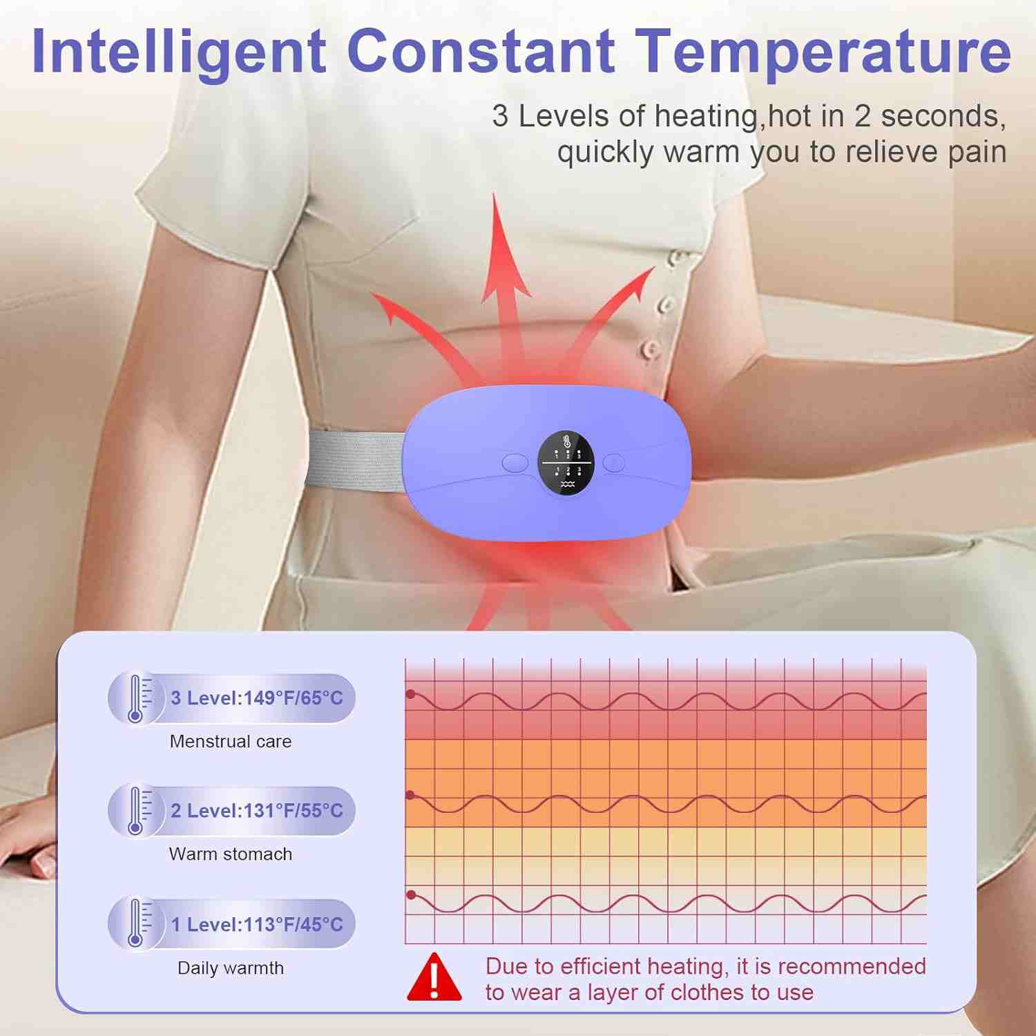 Heat therapy + vibration massage helps relieve menstrual cramps, abdominal, and back pain.