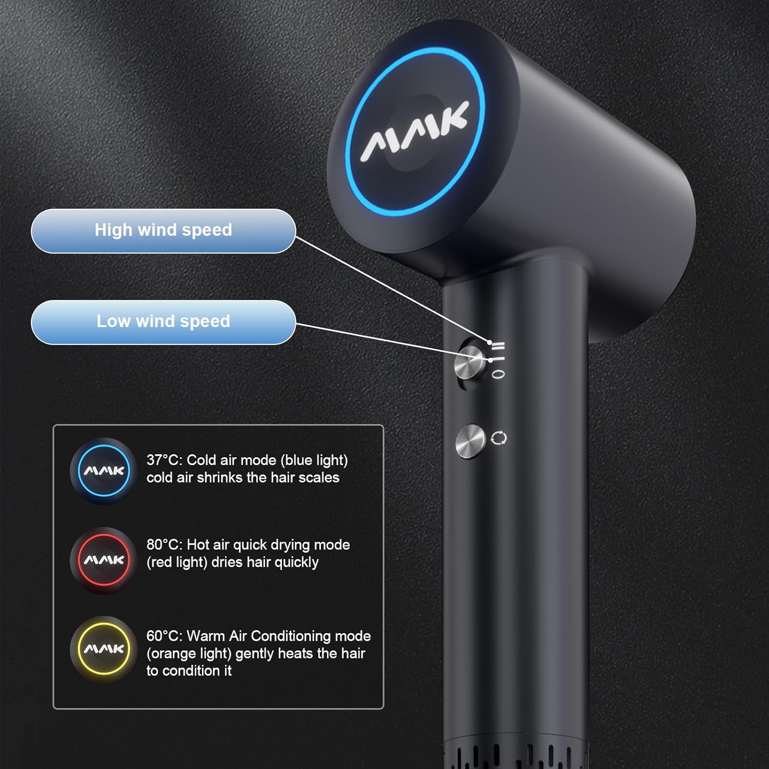 MMK Asciugacapelli Ionico, Phon Capelli Professionale, Phon da 200 Milioni di Ioni Negativi, Asciugatura Rapida 110000 giri/min ad Alta Velocità per Asciugatura Rapida, 57dB Rumore Basso per Viaggi